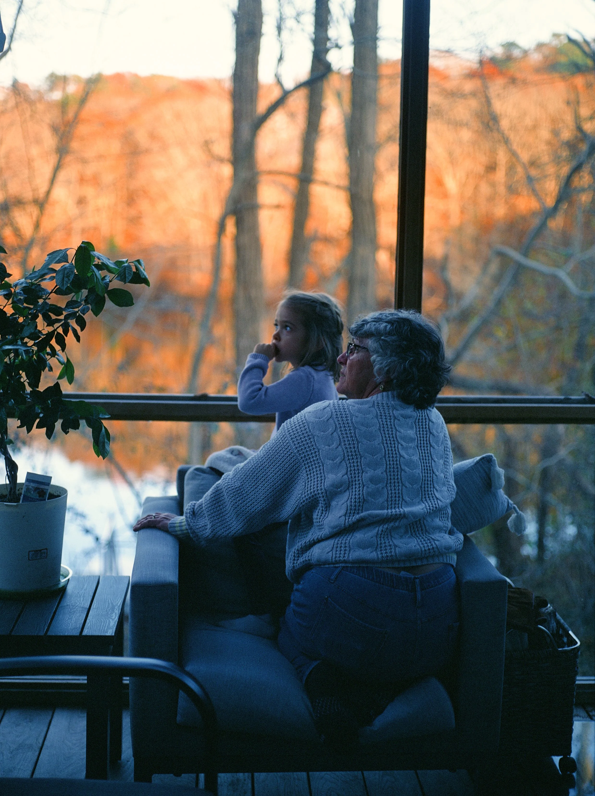I got one roll of this 120 film off e-bay and brough it to Thanksgiving in 2022. Slide film is SO GORGEOUS and I’m obsessed with the crazy saturation this stock offered. I had to shoot at a very slow shutter speed because the ISO is 50. Really happy with these results. THE ORANGES! THE PUPLE IN THE SHADOWS!! Also, on a personal note, the small child is my cousins’s daughter, the first human to be born in our family since me! I call her my neiceling and these photos of my mother and her bird watching melt my heart every time.